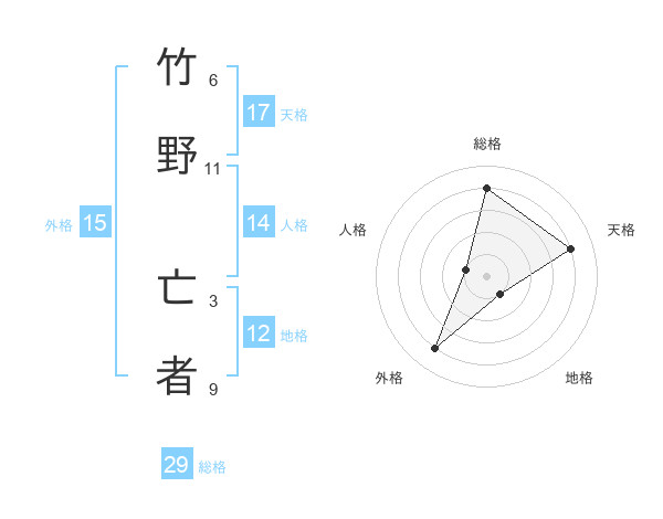 竹野 亡者さんの総格は29画の4点!