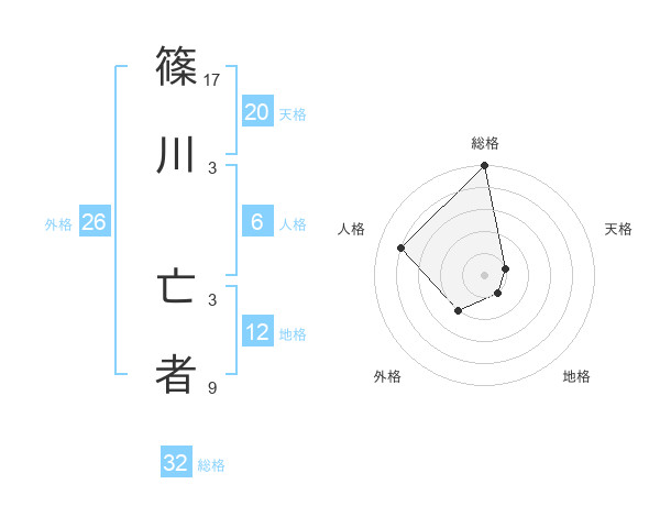 篠川 亡者さんを姓名の画数から五運を鑑定