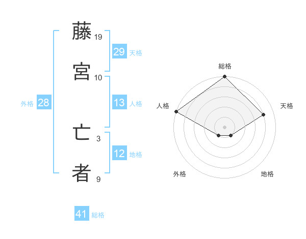 藤宮 亡者さんの天格は29画の4点!