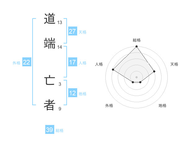 道端 亡者さんの総格は39画の5点!