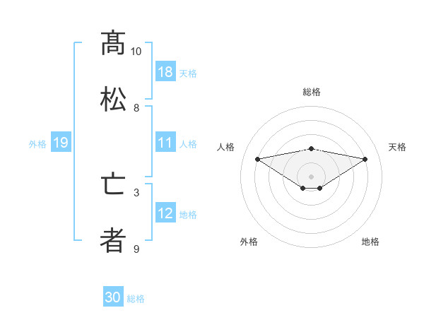 髙松 亡者さんを姓名の画数から五運を鑑定