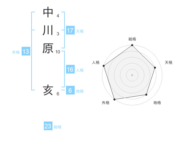 中川原 亥さんの外格は13画の5点!