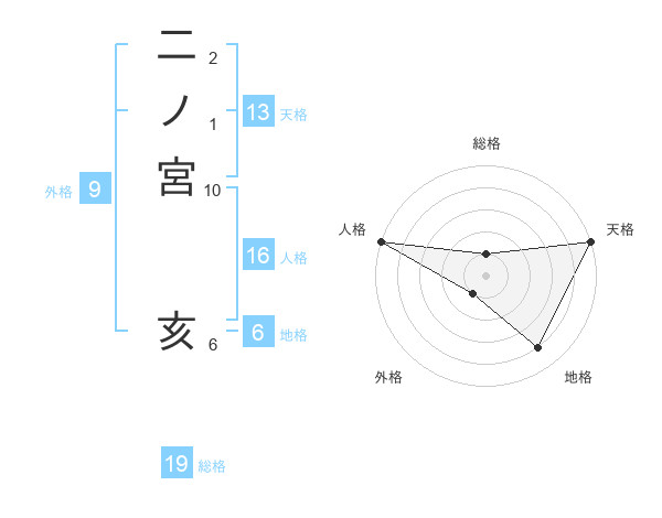 二ノ宮 亥さんの総格は19画の1点!