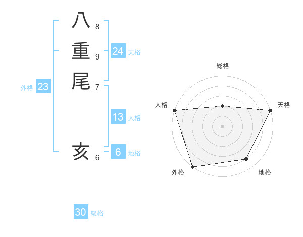 八重尾 亥さんの総格は30画の2点!
