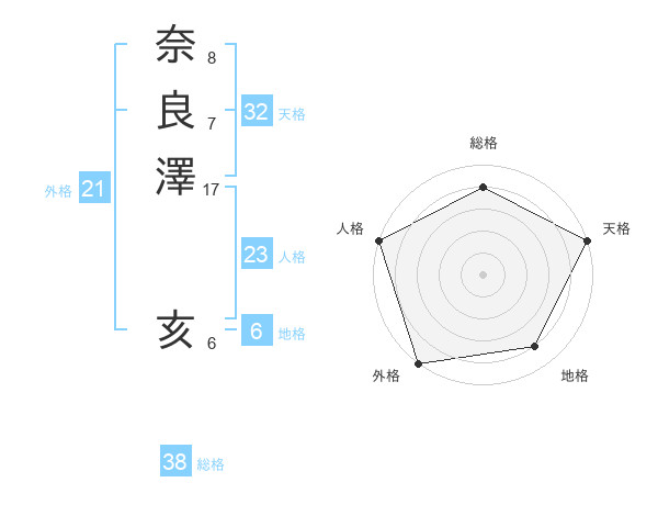 奈良澤 亥さんの総格は38画の4点!