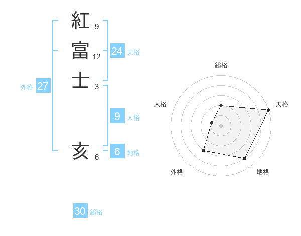 紅富士 亥さんの総格は30画の2点!