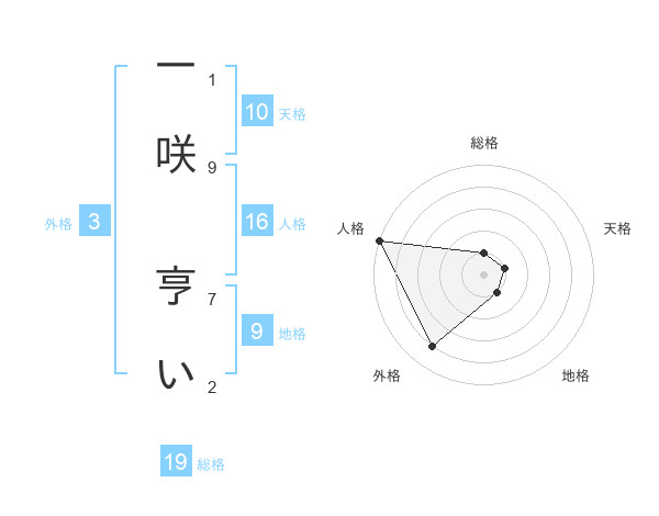 一咲 亨いさんの総格は19画の1点!