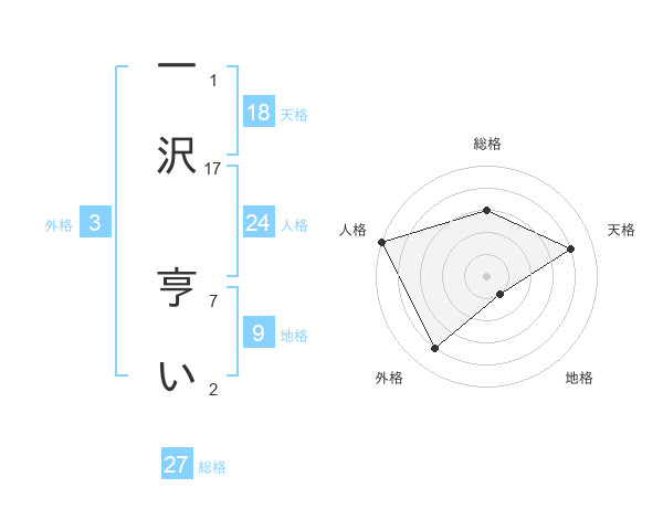 一沢 亨いさんの総格は27画の3点!