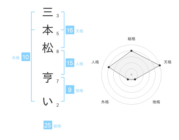 三本松 亨いさんを姓名の画数から五運を鑑定