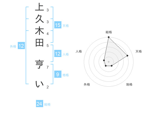 上久木田 亨いさんを姓名の画数から五運を鑑定