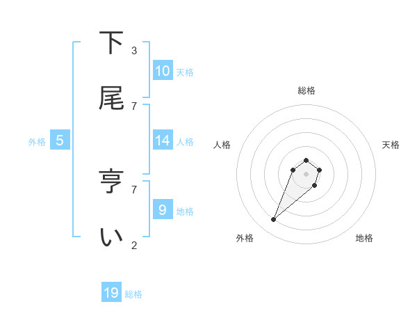 下尾 亨いさんの総格は19画の1点!