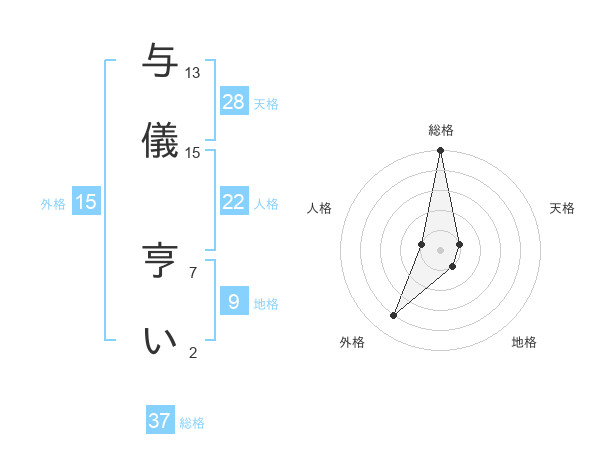 与儀 亨いさんの総格は37画の5点!