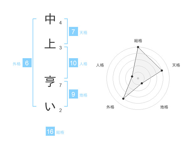 中上 亨いさんの総格は16画の5点!