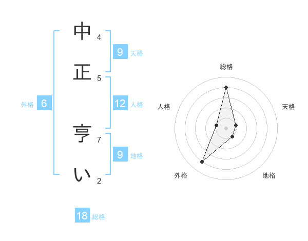 中正 亨いさんの総格は18画の4点!