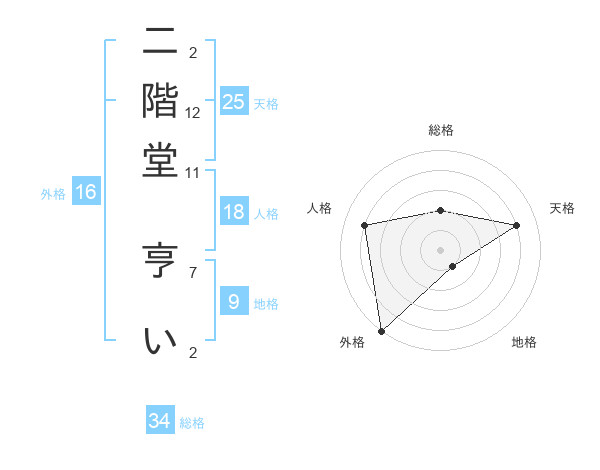二階堂 亨いさんを姓名の画数から五運を鑑定
