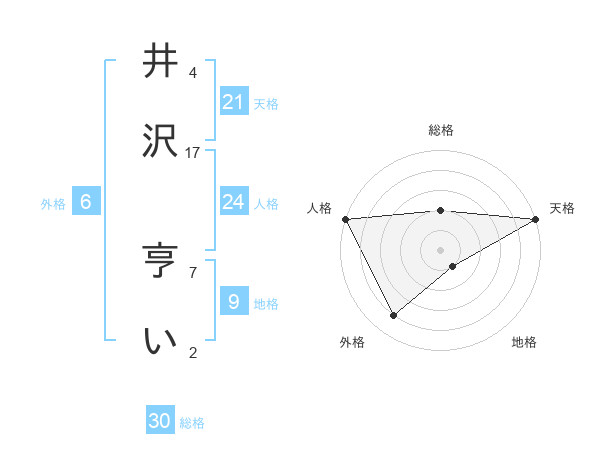 井沢 亨いさんを姓名の画数から五運を鑑定