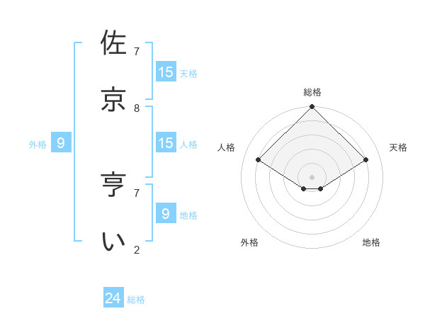 佐京 亨いさんを姓名の画数から五運を鑑定