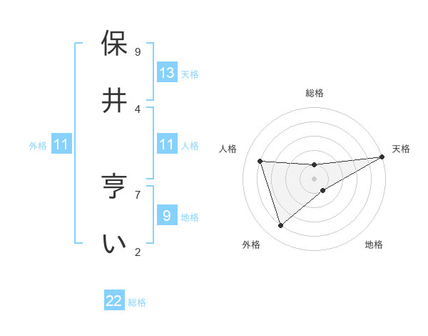 保井 亨いさんの天格は13画の5点!