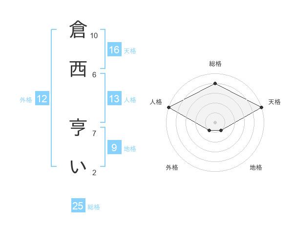 倉西 亨いさんの天格は16画の5点!