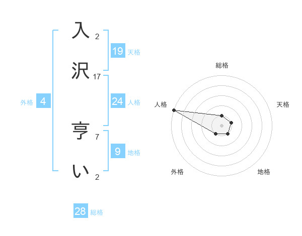 入沢 亨いさんの天格は19画の1点!
