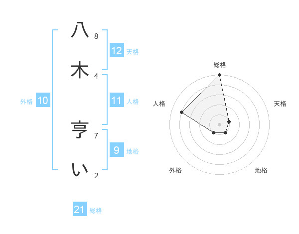 占い結果は姓名判断である以上、良い場合も悪い場合もありますが、決してお名前を誹謗中傷するものでなく、画数の自動計算によって得られたものです。また、本サイトの検索によって得られた鑑定結果で、第三者を誹謗中傷したり名誉を棄損するような行為を禁じます。