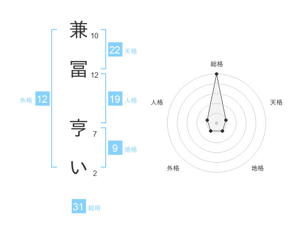 兼冨 亨いさんの総格は31画の5点!