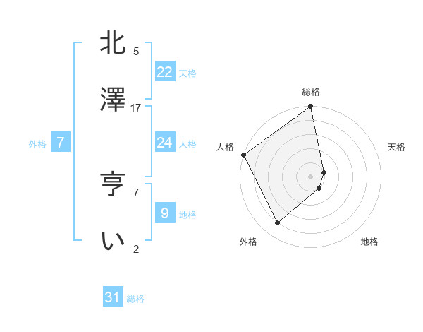 北澤 亨いさんを姓名の画数から五運を鑑定