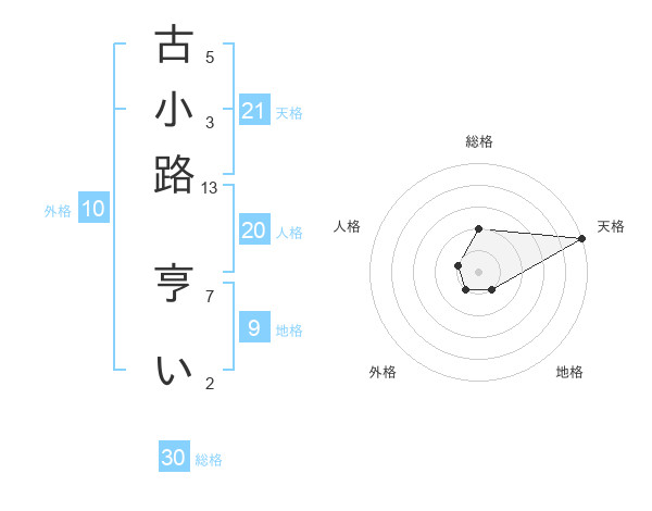 古小路 亨いさんの天格は21画の5点!