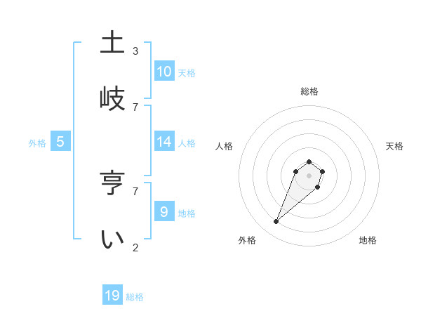 土岐 亨いさんの総格は19画の1点!
