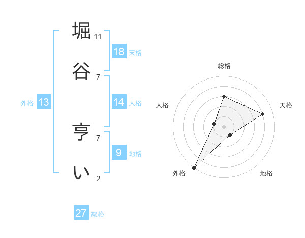堀谷 亨いさんの総格は27画の3点!