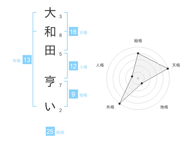 大和田 亨いさんを姓名の画数から五運を鑑定