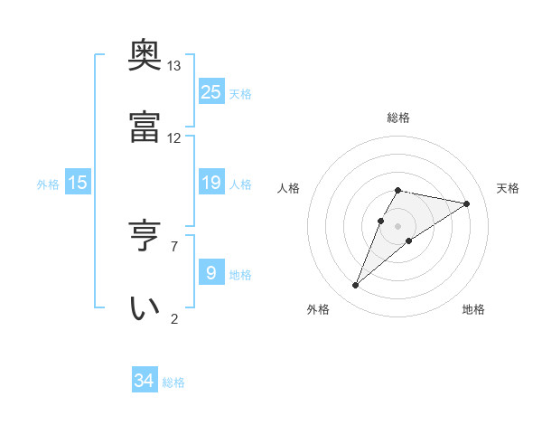 奥富 亨いさんの総格は34画の2点!