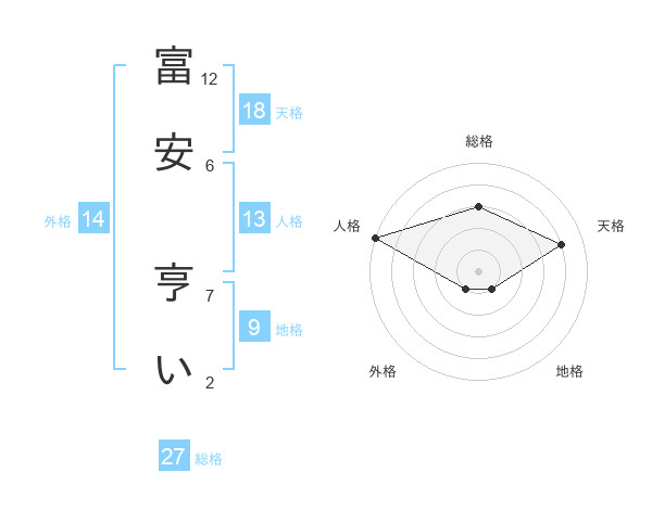 富安 亨いさんの天格は18画の4点!