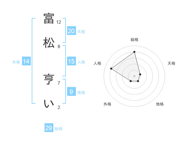 家系が持つ宿命的な運勢を表します。祖先から受け継いだ苗字ですので自分の力が及びません。家柄を象徴します。