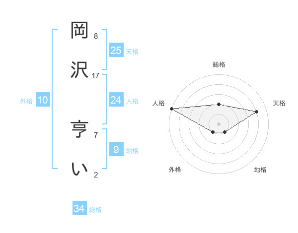 岡沢 亨いさんを姓名の画数から五運を鑑定