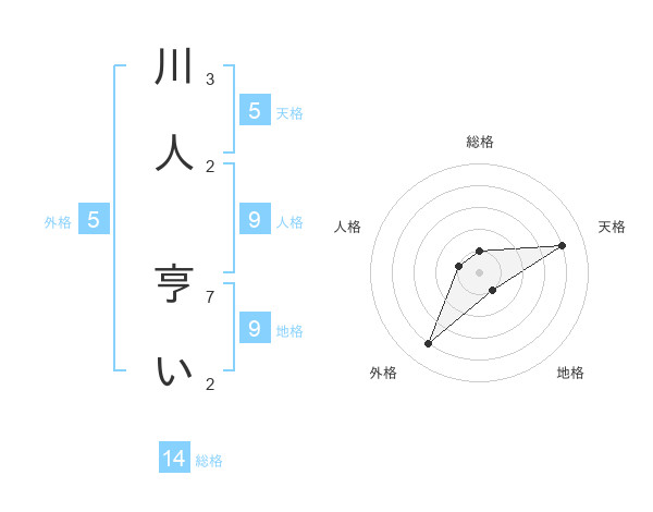 川人 亨いさんの外格は5画の4点!