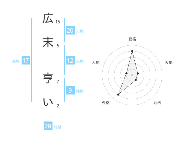 広末 亨いさんの総格は29画の4点!