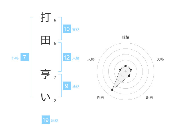 打田 亨いさんの外格は7画の4点!