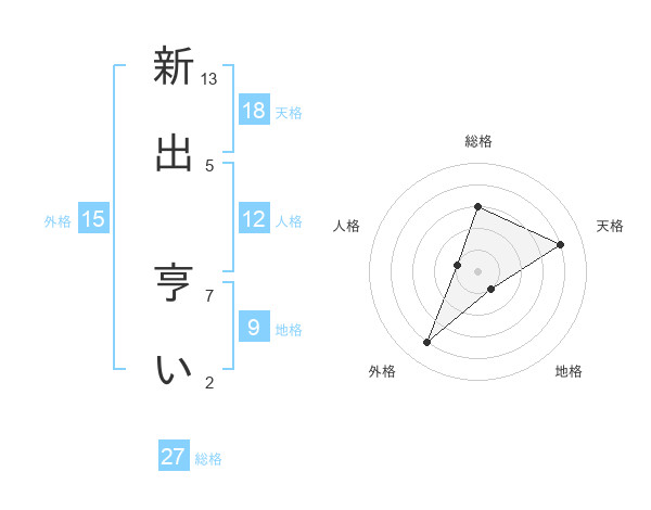 新出 亨いさんの天格は18画の4点!