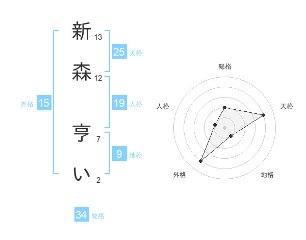 新森 亨いさんの総格は34画の2点!