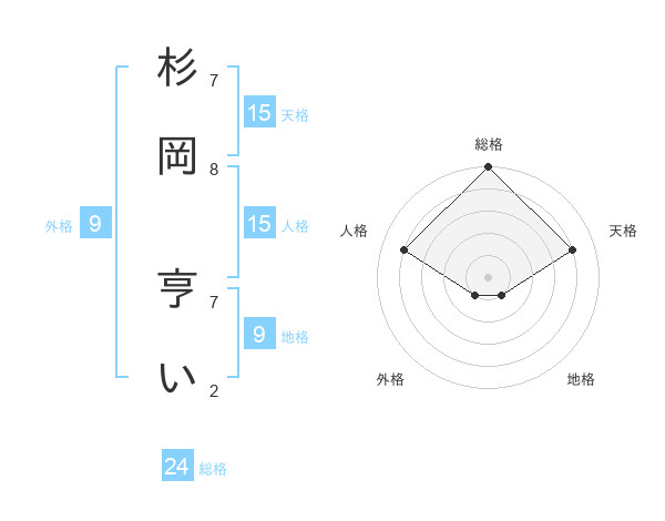 杉岡 亨いさんの総格は24画の5点!