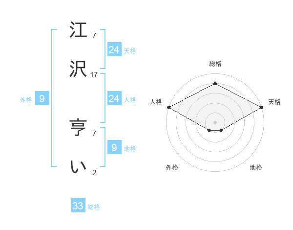 江沢 亨いさんを姓名の画数から五運を鑑定