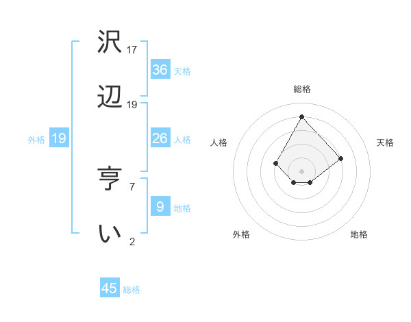 沢辺 亨いさんを姓名の画数から五運を鑑定