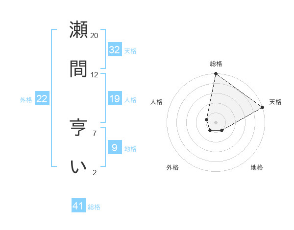 瀬間 亨いさんを姓名の画数から五運を鑑定
