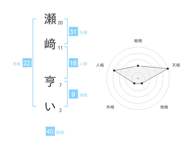 瀬﨑 亨いさんの天格は31画の5点!