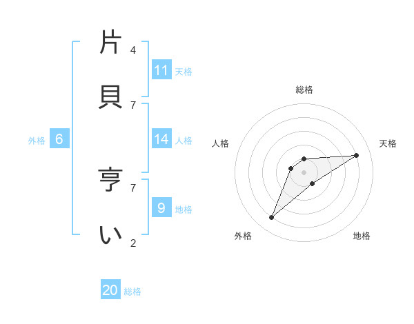 片貝 亨いさんを姓名の画数から五運を鑑定