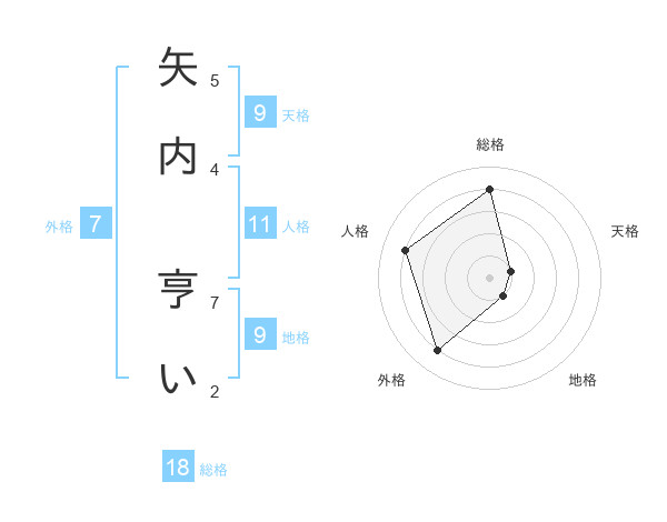 矢内 亨いさんの地格は9画の1点!