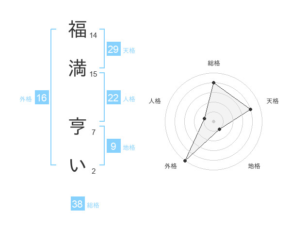 福満 亨いさんの総格は38画の4点!