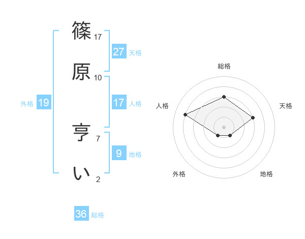 篠原 亨いさんを姓名の画数から五運を鑑定