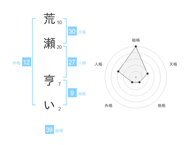 荒瀬 亨いさんの総格は39画の5点!